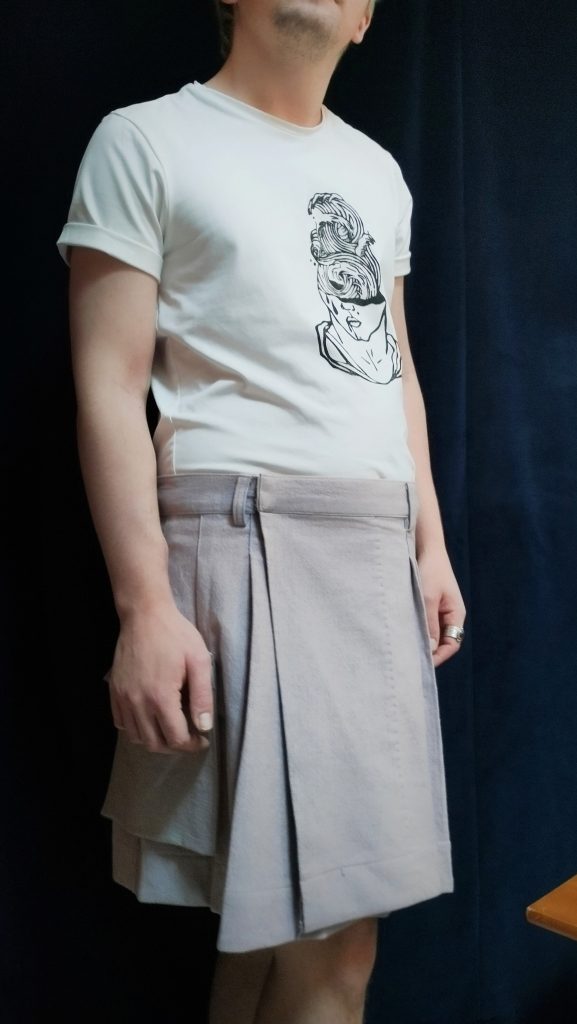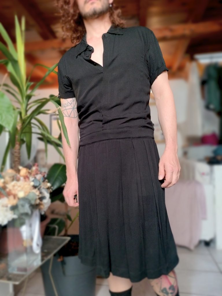 COLLECTION NEITHER OR BOTH JUPE HAKAMA . JUPE KILT JUPE CHINO T RAGLAN LACE TOP LIN BATEAU CHEMISE LACE ROBE UNISEXE